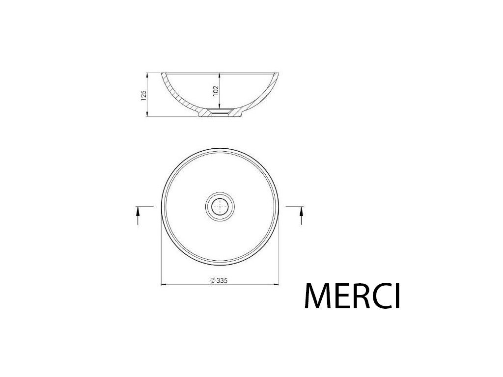 - Umyvadlo Merci (na desku): rozměry (ŠxHxV) – 33,5 x 33,5 x 12,5 cm