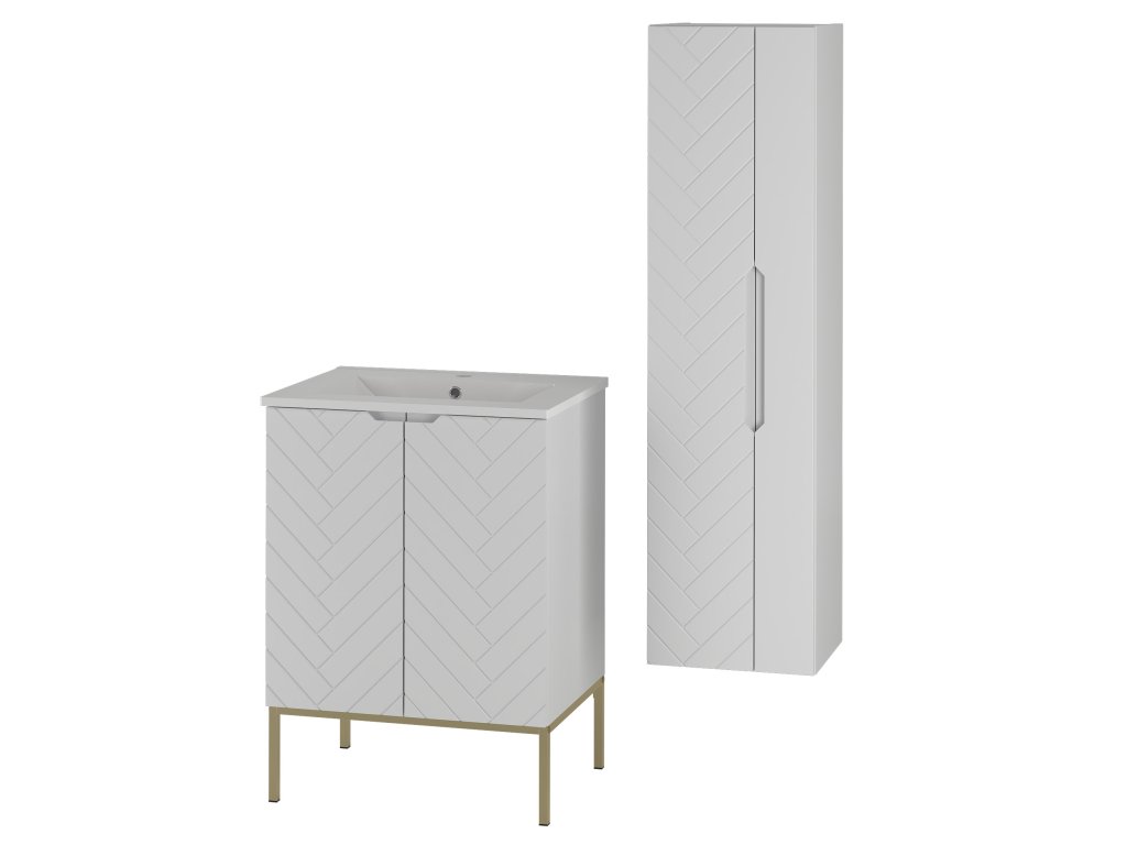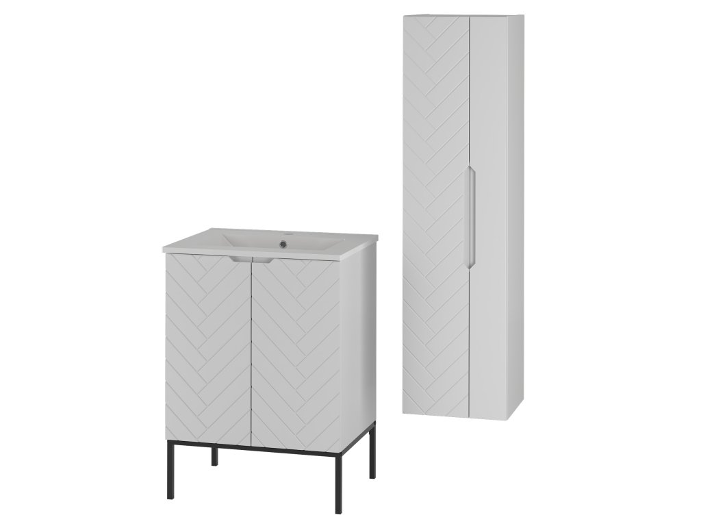 Koupelnová skříňka Aspen 09 z kolekce Aspen nabízí možnost výběru ze čtyř různých sestav, aby dokonale splnila vaše požadavky na design a funkčnost. Každá varianta se vyznačuje moderním frézovaným stromečkovým vzorem na dvířkách a minimalistickým bezúchytkovým designem. Šířka 60 cm a praktické úložné prostory jsou základem každého typu sestavy.