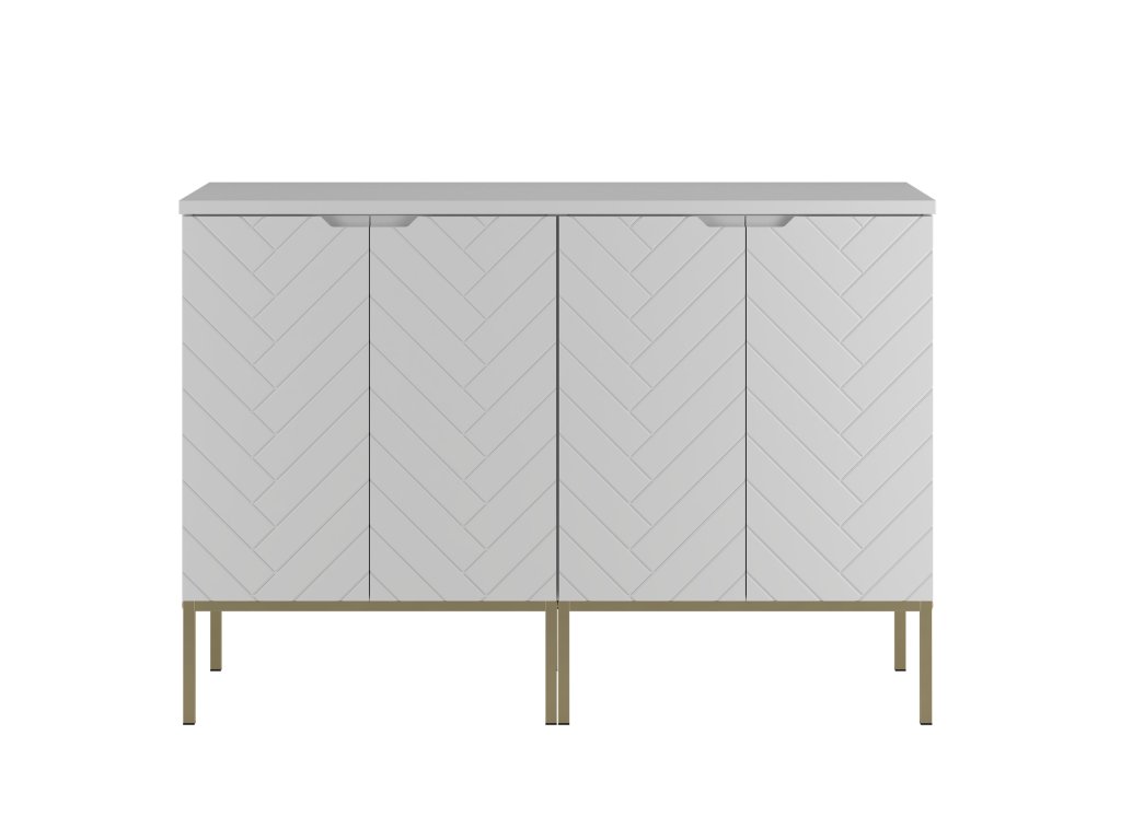 Povrchy jsou ošetřeny odolnými PVC hranami, což zvyšuje jejich životnost a kvalitu. Nábytek je dostupný ve třech matných barvách: bílá, černá nebo béžová. Pro dokonalé doladění designu si zákazník může vybrat také barvu kovové podstavy: černá nebo zlatá, přičemž nožičky mají výšku 20 cm, což nábytku dodává vzdušný vzhled.