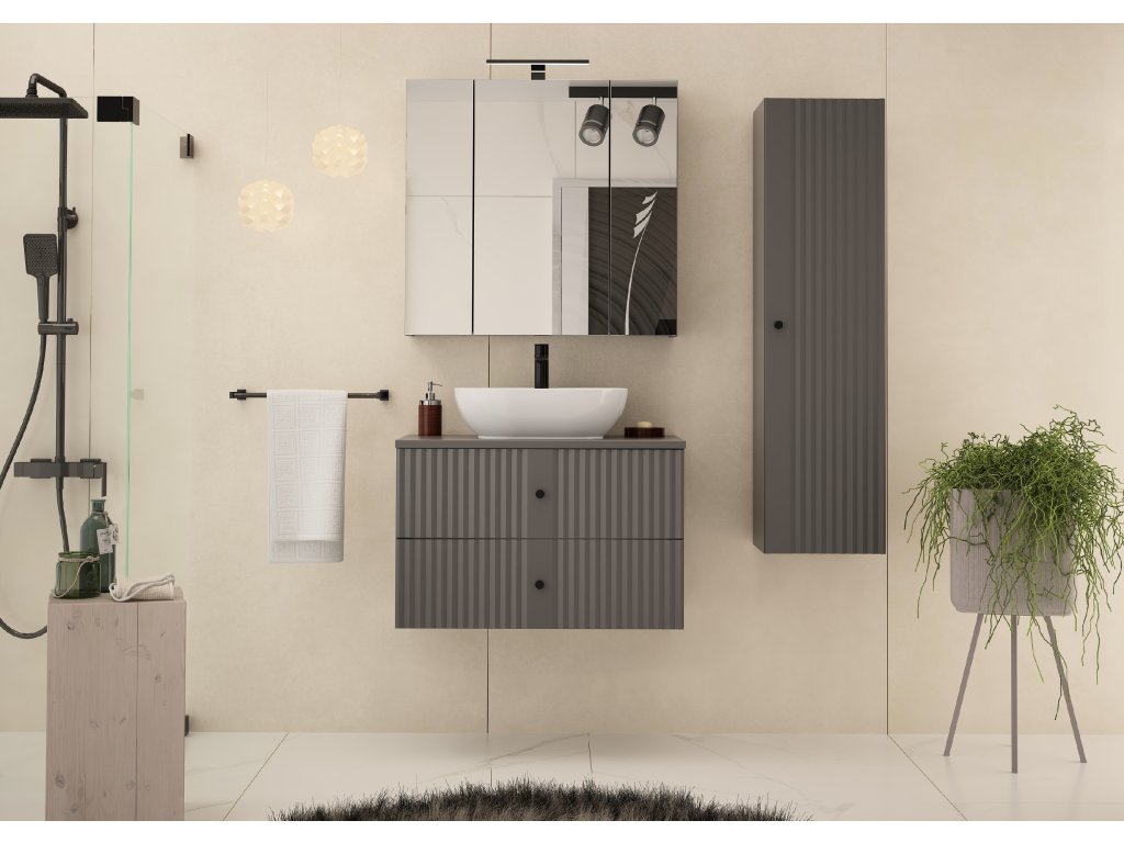 Koupelnová skříňka s umyvadlem Xilo 01, je součást kolekce Xilo, která spojuje moderní design s precizním zpracováním a praktičností. Tento model v elegantní antracitové barvě je důkazem, že kvalita a funkčnost mohou jít ruku v ruce.