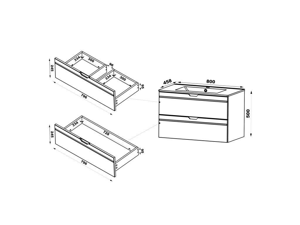 Vyrobena je z laminované desky a MDF front, takže se můžete spolehnout na vysokou odolnost a dlouhou životnost. Dostupné jsou 4 varianty: bez desky, s deskou, se zapuštěným umyvadlem, s umyvadlem na desku.
