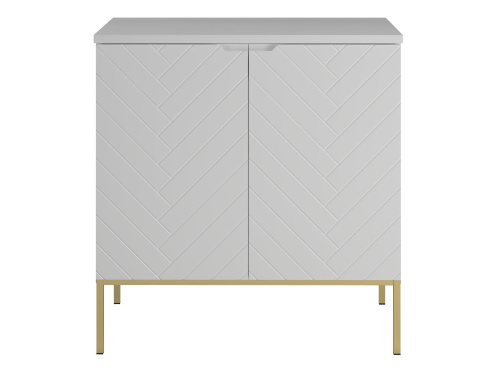 Povrchy jsou ošetřeny odolnými PVC hranami, což zvyšuje jejich životnost a kvalitu. Nábytek je dostupný ve třech matných barvách: bílá, černá nebo béžová. Pro dokonalé doladění designu si zákazník může vybrat také barvu kovové podstavy: černá nebo zlatá, přičemž nožičky mají výšku 20 cm, což nábytku dodává vzdušný vzhled.