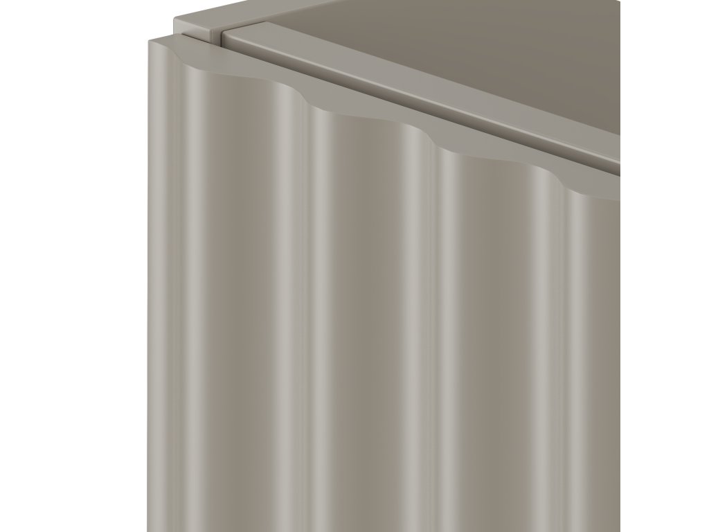 Koupelnová skříňka Aqua 02P v matné béžové barvě přináší jemný, ale moderní design s praktickým řešením. S šířkou 80 cm, dvěmi zásuvkami a úzkou otevřenou poličkou je dostupná ve variantách: s vrchní deskou a s umyvadlem na desku. Vlnovitý profil dvířek a zlaté úchyty dodávají skříňce luxusní vzhled, který dokonale zapadne do moderních koupelen.