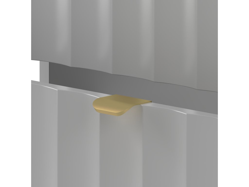 Elegantní profil vtlačených vln na čelech zásuvek a zlaté kovové úchytky dodávají koupelně sofistikovaný vzhled, zatímco závěsné provedení zdůrazňuje vzdušnost a čisté linie prostoru. Kolekce Arkos je vyrobena z kvalitních materiálů – laminované DTD (16 mm) a fóliované MDF (18 mm) – které zaručují odolnost a dlouhou životnost i ve vlhkých podmínkách. Skříňka disponuje tichým dovíráním a zásuvkami s polovýsuvy, což zvyšuje komfort při každodenním používání.