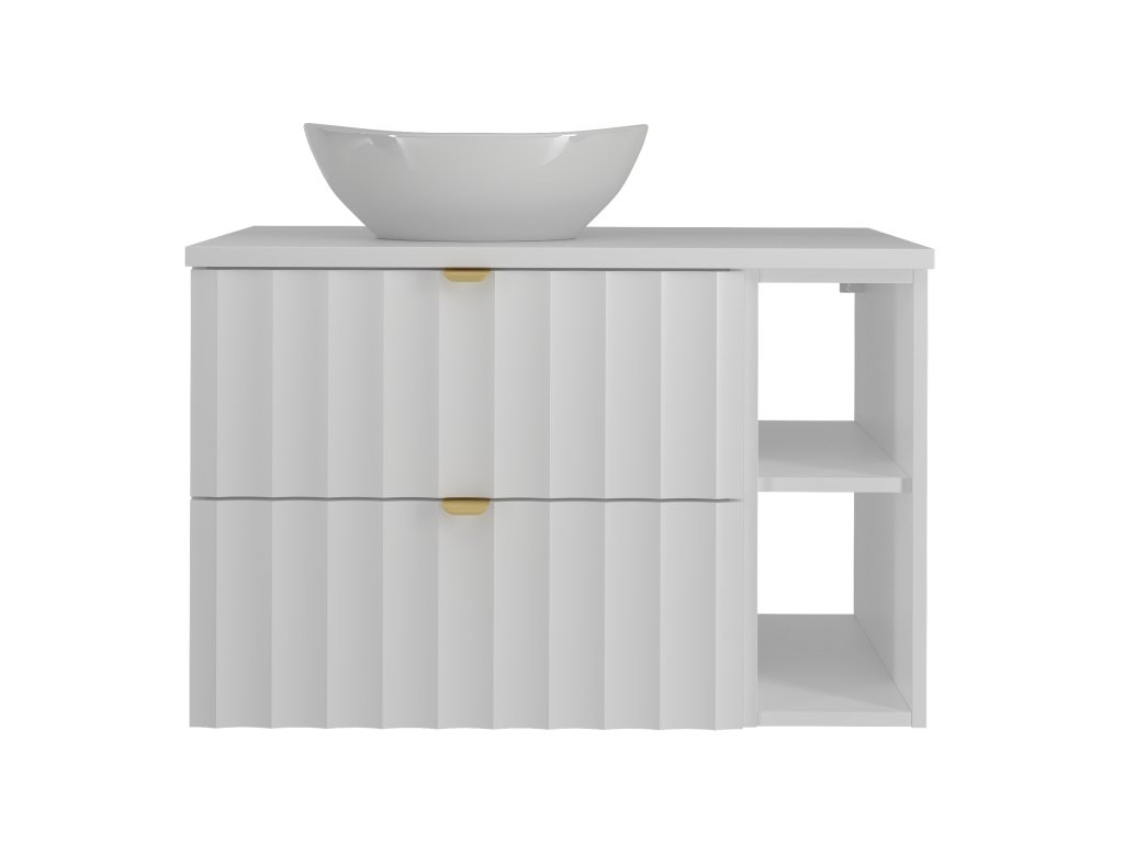 Skříňka pod umyvadlo Arkos 06P v matné bílé barvě přináší styl a praktičnost do vaší koupelny. S šířkou 80 cm, dvěma zásuvkami a úzkou poličkou nabízí dostatek místa k organizaci. Dostupná je ve dvou variantách, aby se dokonale přizpůsobila vašim potřebám, a díky profilu vtlačených vln a zlatým kovovým úchytům dodává interiéru eleganci a moderní vzhled.