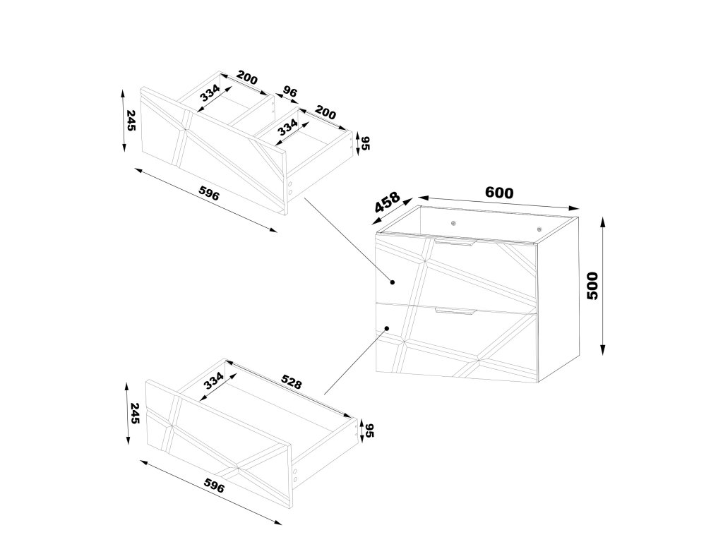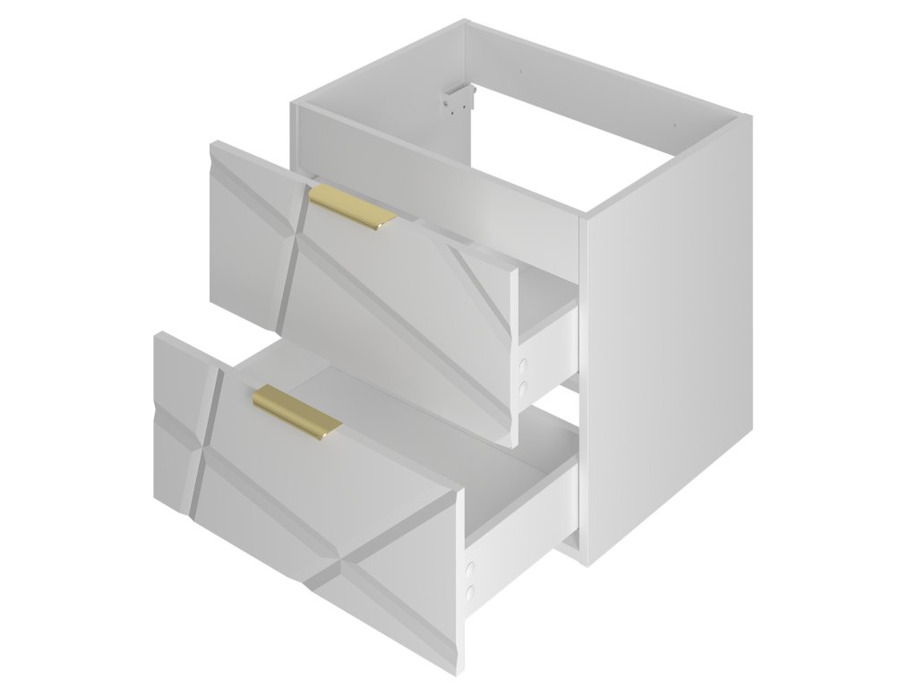 Dvě zásuvky jsou vybaveny částečným výsuvem a tichým dovíráním, což zajišťuje pohodlné a bezhlučné používání. Skříňka je navržena se spodní montáží, která usnadňuje instalaci a údržbu.