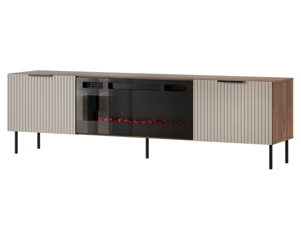 Televizní stolek Almera 6 s elektrickým LED krbem – béžová / ořech