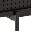 TV stolek Angus v černé barvě kombinuje industriální vzhled s funkčností. Díky posuvným dvířkům, otevřeným přihrádkám a síťkovanému designu nabízí dostatek úložného prostoru i výrazný vizuální prvek do moderního interiéru.
