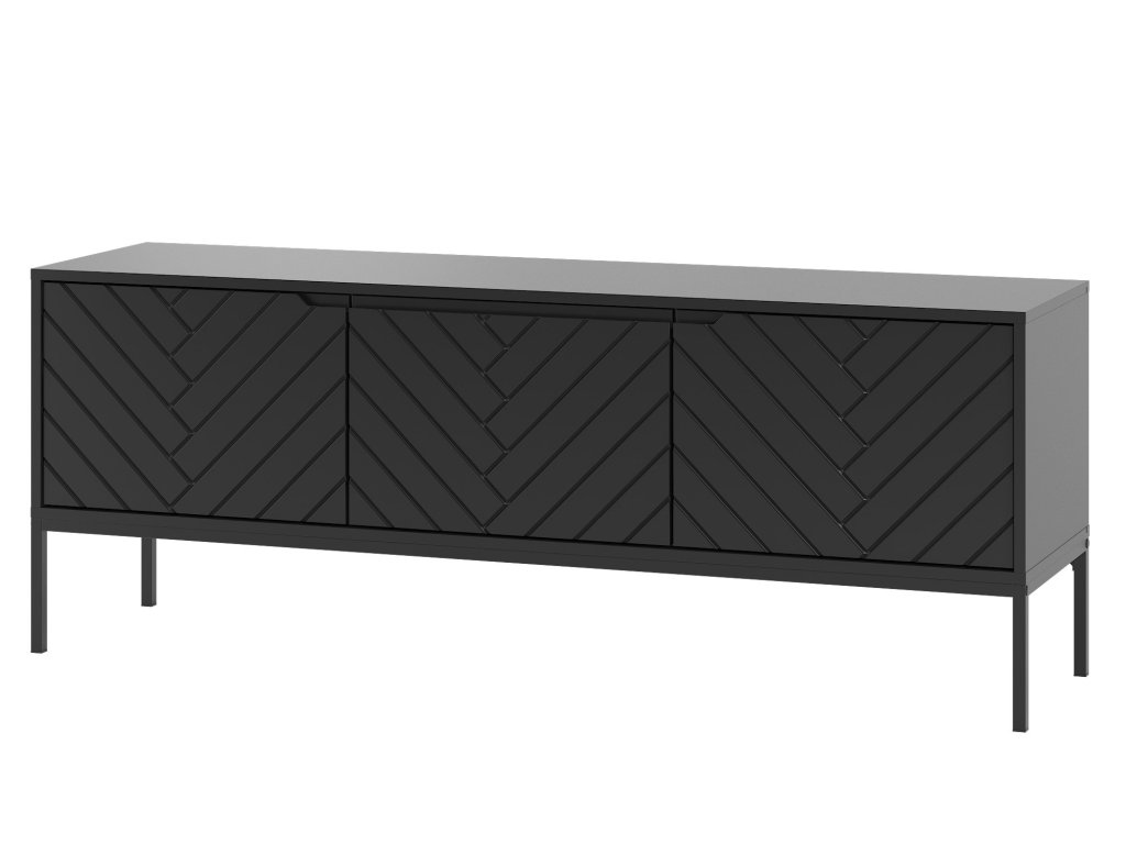 TV stolek Aspen 01 z kolekce Aspen v elegantní matné černé barvě je dokonalým spojením sofistikovaného designu a funkčnosti. S frézovanými čely s unikátním stromečkovým vzorem a minimalistickým vzhledem bez úchytek vynikne v každém moderním interiéru. Stolek má šířku 151 cm, nabízí tři praktická dvířka a zaujme detaily, jako je tiché dovírání.