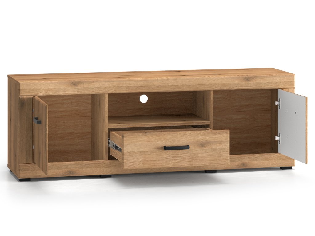 TV stolek Dora 06 v dekoru dub evoke s 2 skříňkami a 1 zásuvkou poskytuje dostatek prostoru pro techniku i doplňky. Elegantní design se zaoblenými čely a tichým dovíráním se hodí do každého moderního obývacího pokoje.