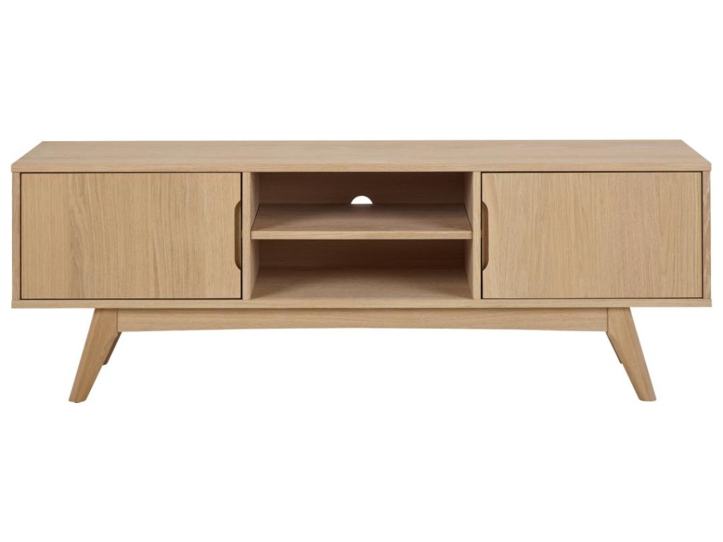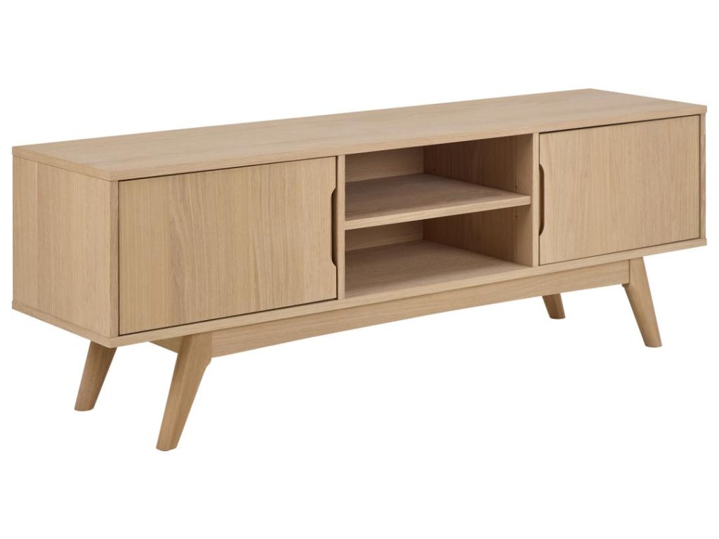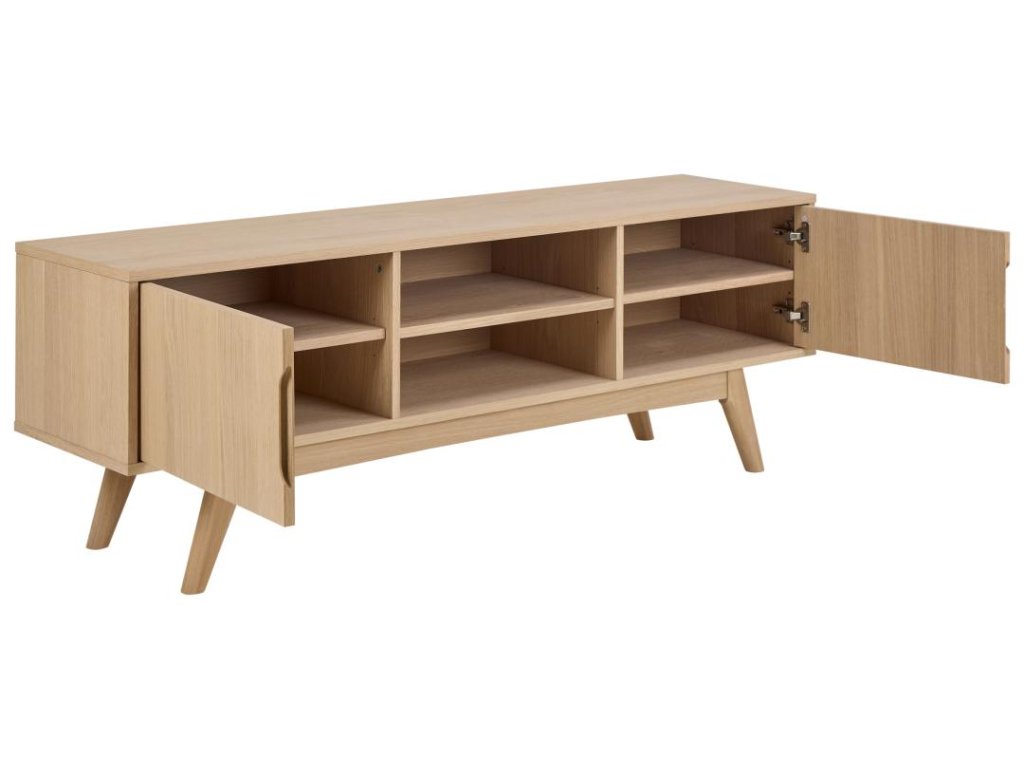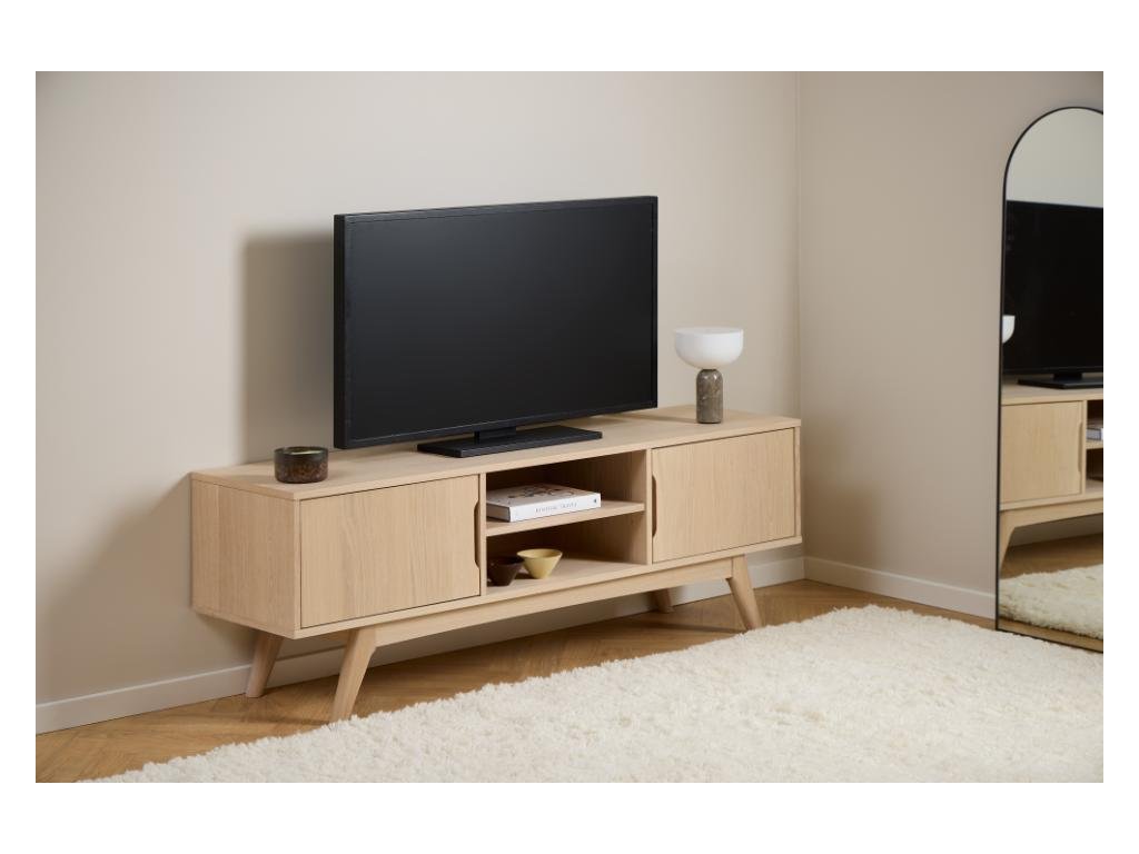 TV stolek Marte v barvě dub bělený, nabízí skandinávský vzhled a praktický úložný prostor. S rozměry 160×40×55 cm, dvěma dvířky, třemi nastavitelnými policemi a otvorem pro kabely je perfektním řešením pro moderní a uklizený obývací pokoj.