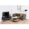 TV stolek Seaford spojuje matné černé povrchy a kovové detaily s funkčním řešením úložného prostoru. Zásuvky, dvířka i otevřená přihrádka nabízí spoustu místa. Ideální doplněk k modernímu interiéru.