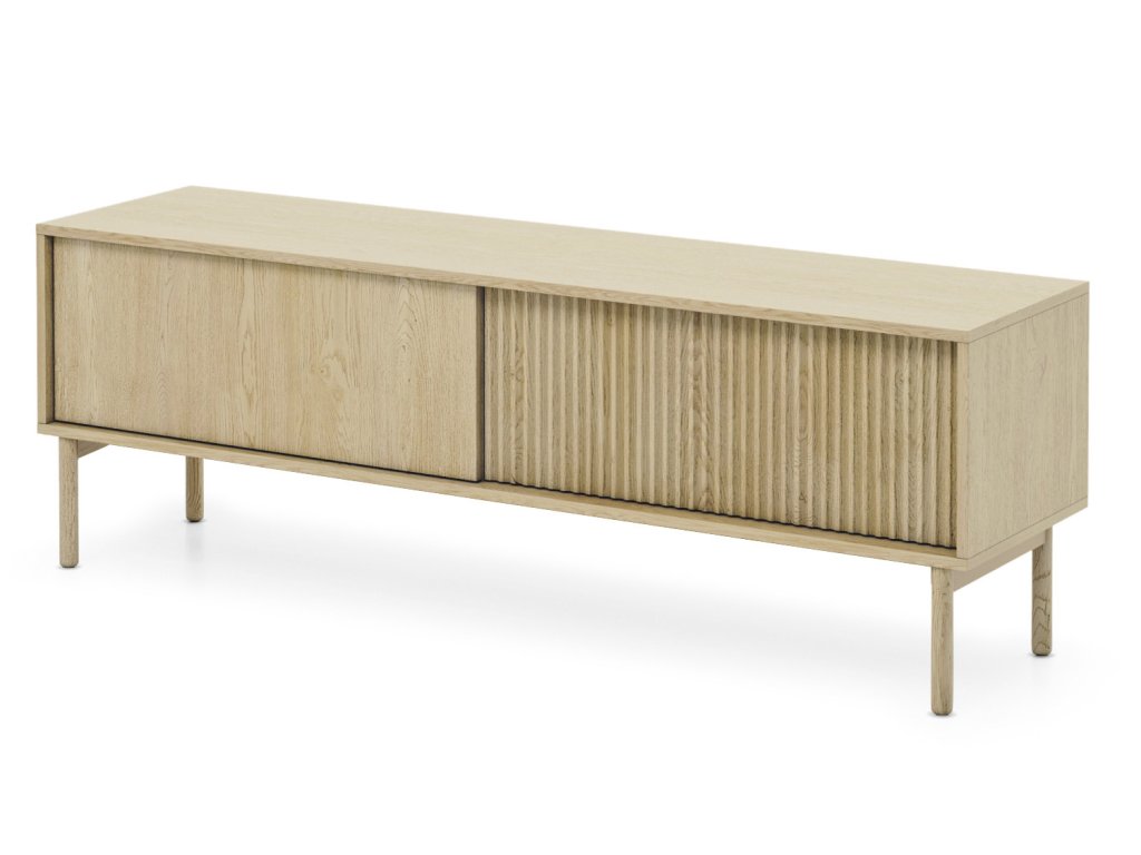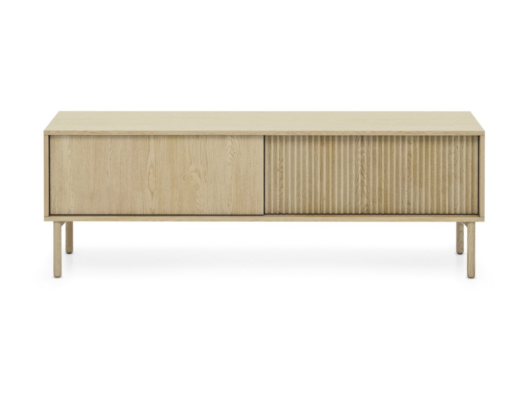 TV stolek Tavo D v dekoru dub krémový spojuje přírodní vzhled, moderní minimalismus a praktický úložný prostor. Nabízí ideální rozložení – tři zásuvky pro elektroniku a příslušenství jsou skryty za čely s jemným frézováním, které vytváří strukturovaný vizuální efekt. Otevírání zajišťuje push-to-open systém, díky čemuž působí celek čistě a uhlazeně – bez rušivých úchytek. Dřevěné nožičky a vnitřní části v dekoru dub sonoma dotvářejí hřejivý charakter nábytku, který se skvěle hodí do obývacího pokoje, kde chcete spojit styl s funkčností.