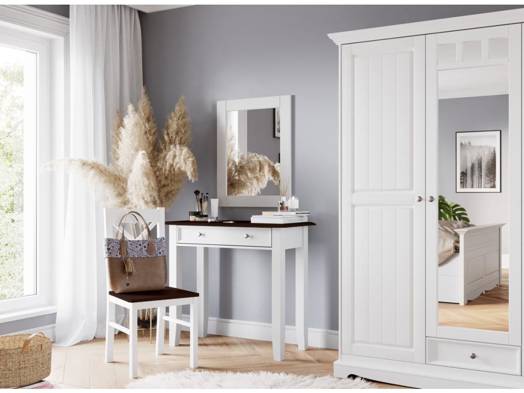 Toaletní stolek z masivu Bellu - bílá/ořech