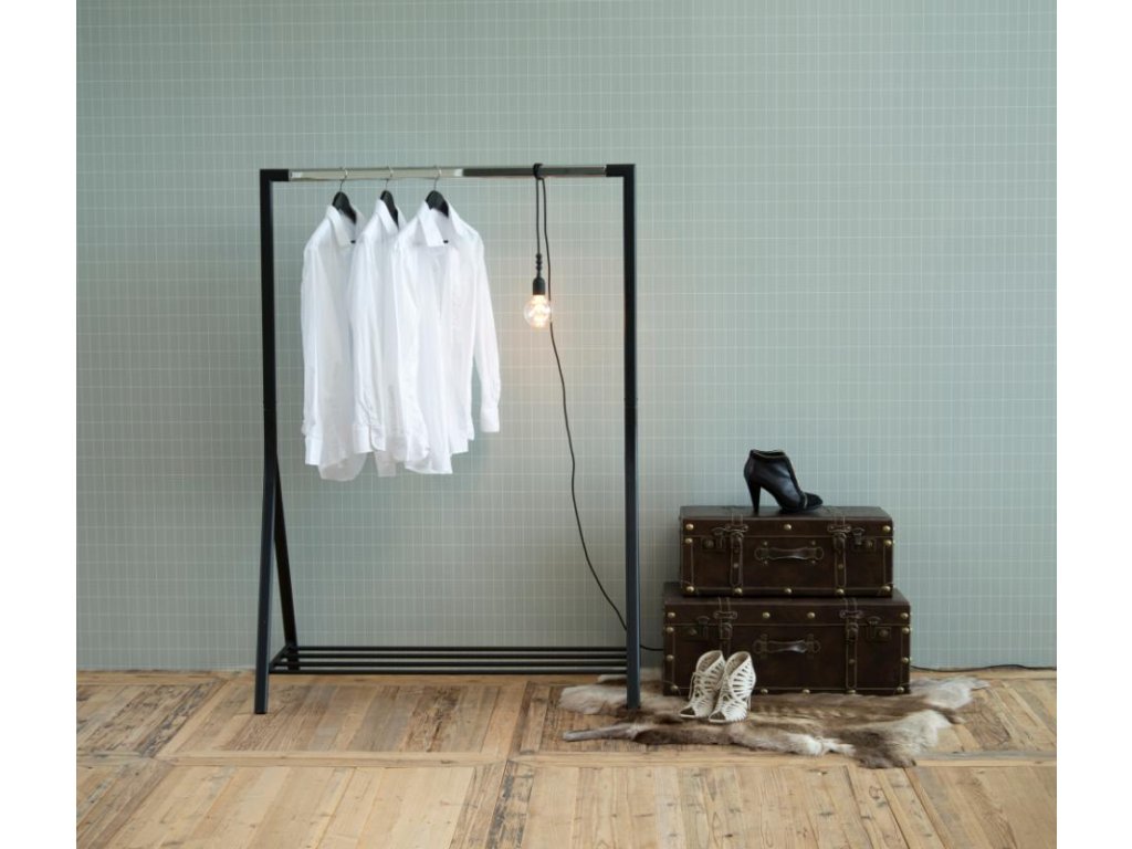 Věšák na oblečení Brent – otevřený šatník v černé s chromovou tyčí