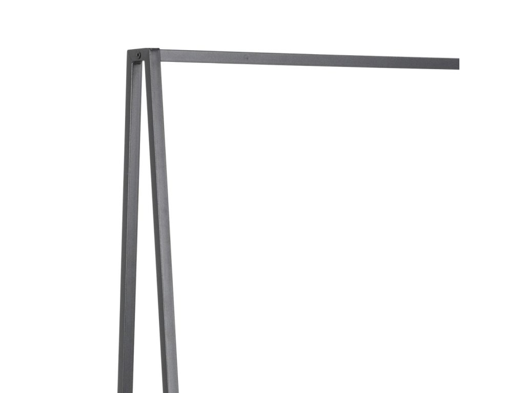 Všestranný stojan v elegantní „A“ siluetě přinese do předsíně či ložnice čistý industriální akcent. Matný černý ocelový rám s hrubým práškovým nástřikem působí subtilně, ale unese kabáty i těžké zimní bundy. Policová dvojice v dekoru popelově černého jasanu navíc poskytne místo na boty, košíky nebo složené svetry, takže vše potřebné máte okamžitě po ruce a pod kontrolou.