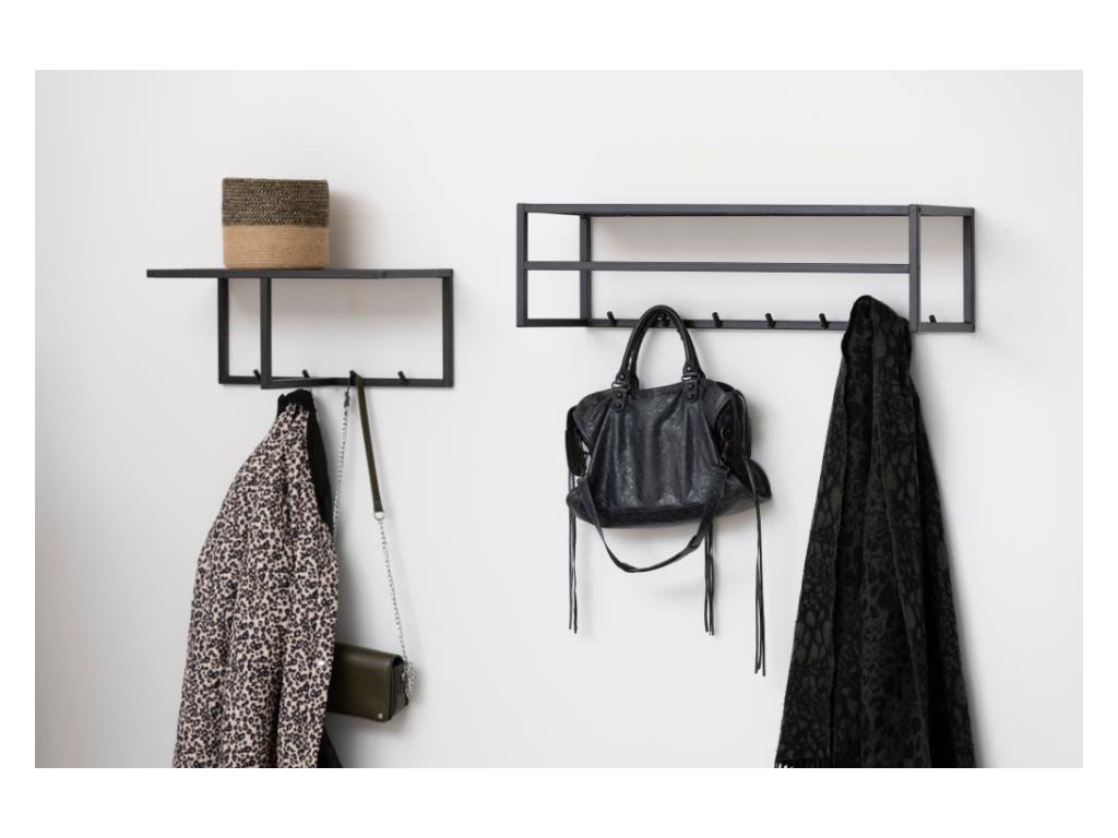 Nástěnný věšák Seaford je stylovým řešením do menších prostor. Černá kovová konstrukce působí subtilně a zároveň pevně. Ideální na kabáty, šály či klíče – v předsíni či na chodbě jej ocení každý, kdo má rád pořádek.