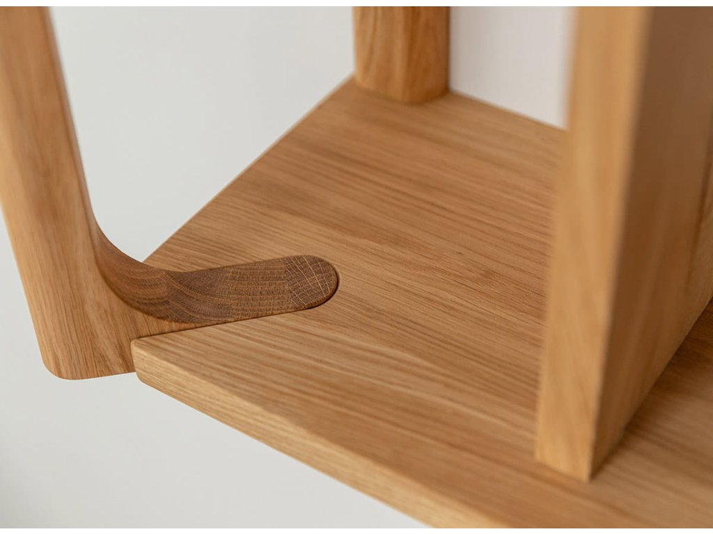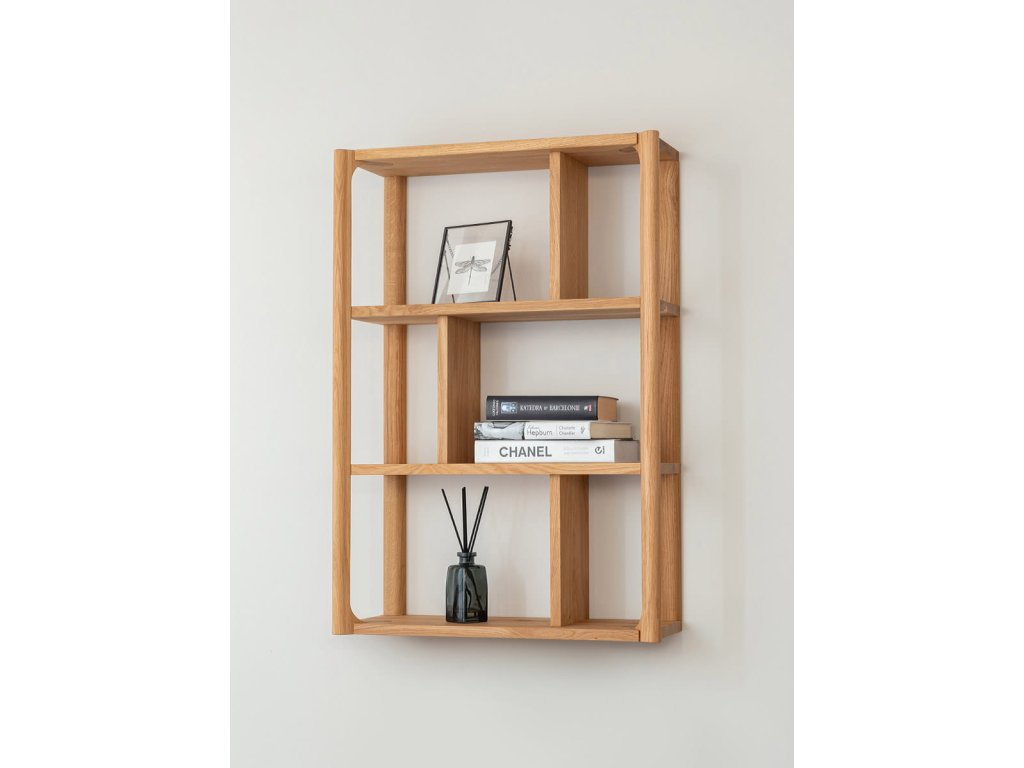 Závesný regál Campi z masívneho dubu je praktickým riešením pre využitie priestoru na stene. Jeho otvorená konštrukcia umožňuje prehľadné uloženie aj vystavenie vecí. Svetlý odtieň dreva pôsobí prirodzene a rozjasňuje interiér. Ideálna voľba pre priestor, kde sa spája funkčnosť a čistý dizajn.