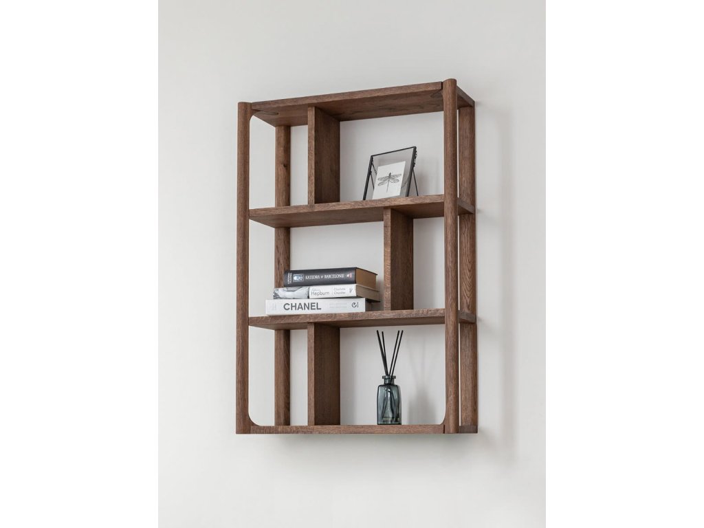 Závesný regál Campi v prevedení tabakovo hnedá zaujme svojím výrazným tónom a premysleným rozdelením priestoru. Vyrobený z masívneho dubu s olejovanou povrchovou úpravou je odolný a zároveň esteticky pôsobivý. Šesť policových segmentov poskytuje dostatok miesta na vystavenie aj uskladnenie rôznych predmetov. Ideálny doplnok na stenu, ktorý spája funkčnosť s moderným dizajnom.